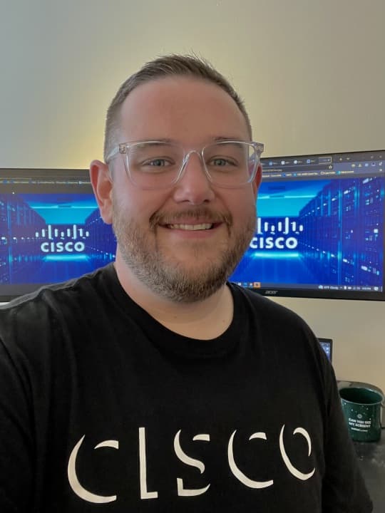 After learning more about the program, Burnett began studying the Cisco Certified Network Associate (CCNA) certification course material while continuing to work at the Credit Union. He was able to use the free Cisco Net Academy resources to prepare for the certification. Sam recalls that it was long days while studying, but well worth his time. Before long, he would become one of five apprentices selected for Cisco’s pilot program that launched in the fall of 2021.